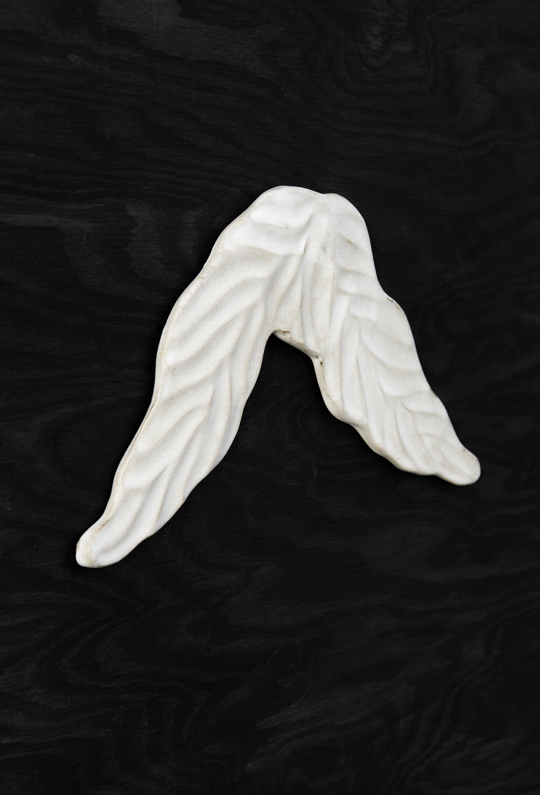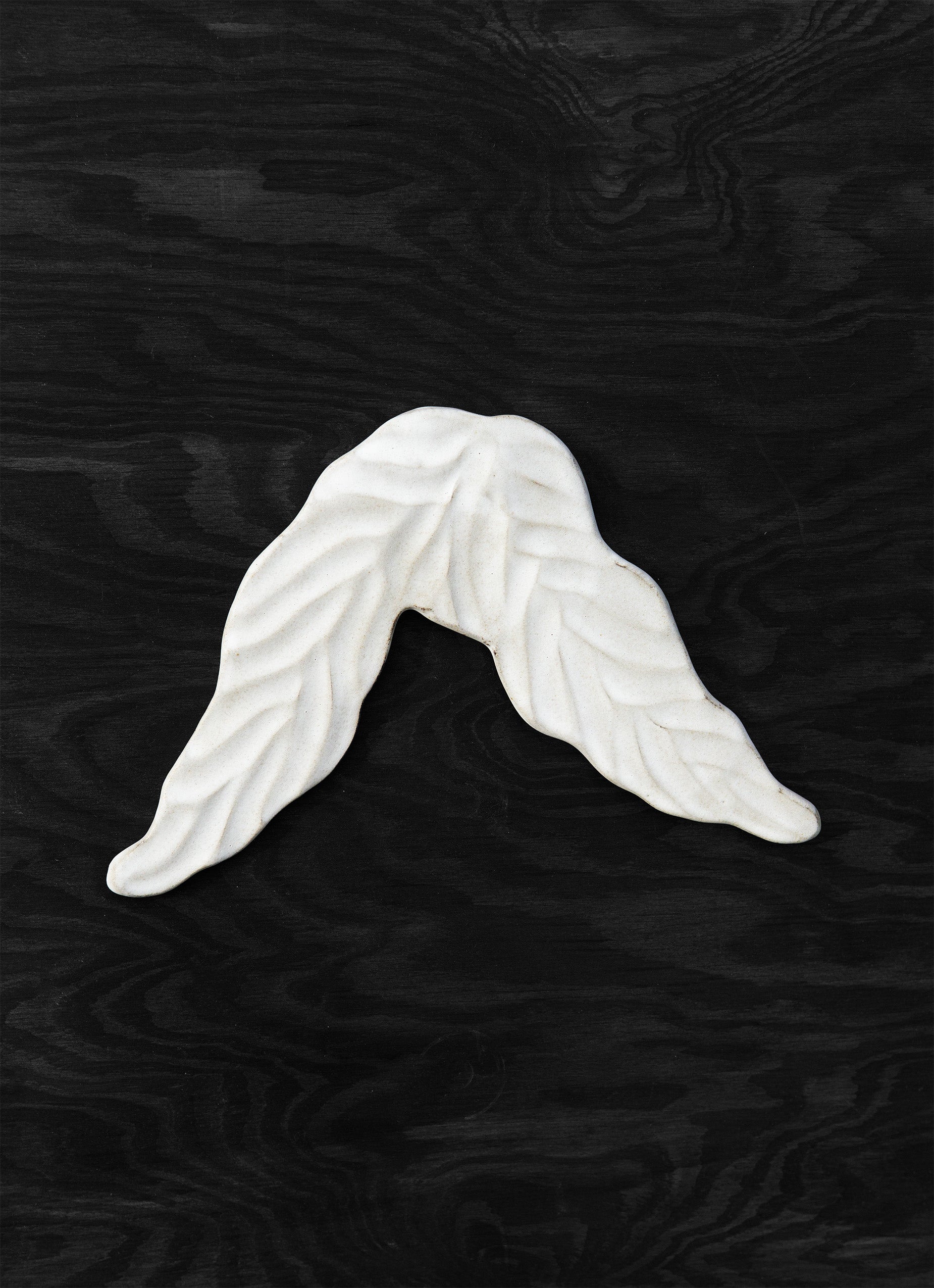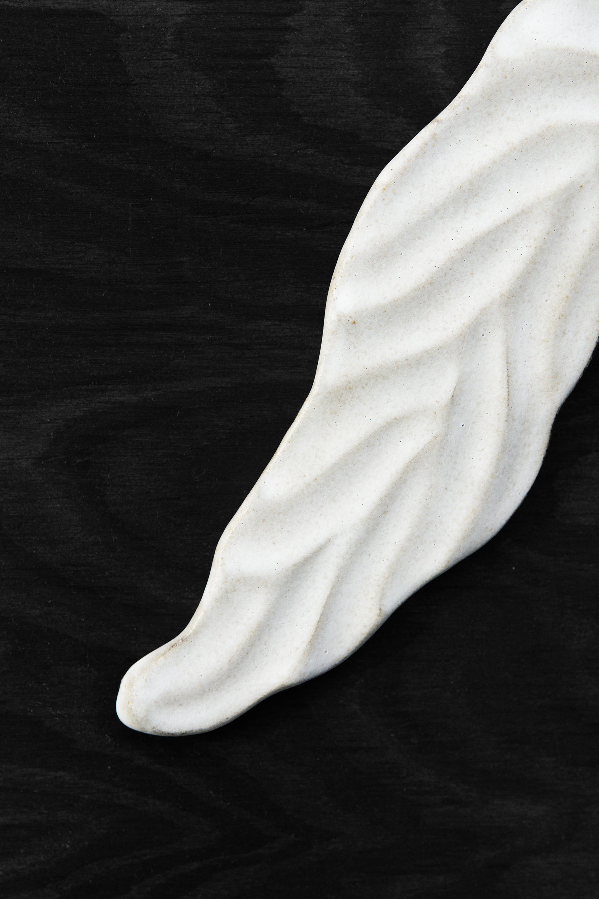 Ceramic leaves in a white stoneware clay, glazed in a white matte glaze.